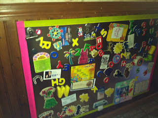 I know, pictures not great, but you get the idea. The one on top is actually on the bottom of my kitchen wall. The kids can easily access that one. My 15-month old is having a blast with it. The 2nd pic, is of two, one above the other. I have the kids' calendar there. I am going to set up a weather station too.